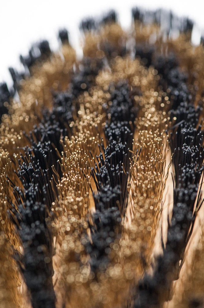 Plus souples que pour la brosse pour chiens et chats à poils longs, les poils en laiton incorporés dans les sillons de cette brosse permettent de conserver le brillant de la fourrure tout en éliminant les saletés et contaminants rencontrés dans la nature.