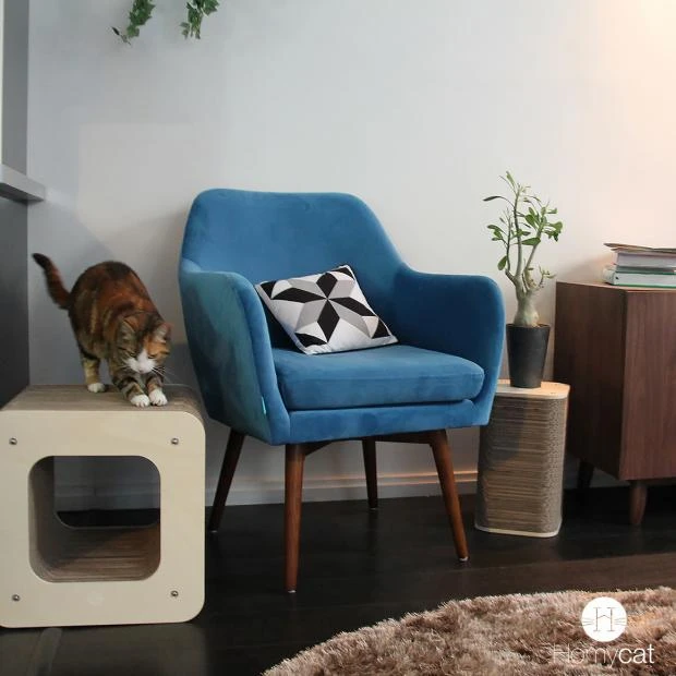 Comme tous les griffoirs de Homycat, la partie à griffer en carton est amovible afin de pouvoir la remplacer une fois usée.