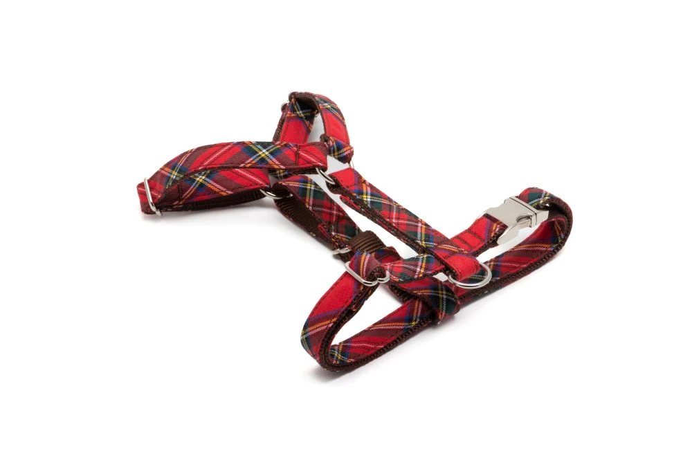 Ce harnais en H est disponible dans plusieurs coloris très tendance comme le Tremp, le fameux tissus écossais, le grand classique.