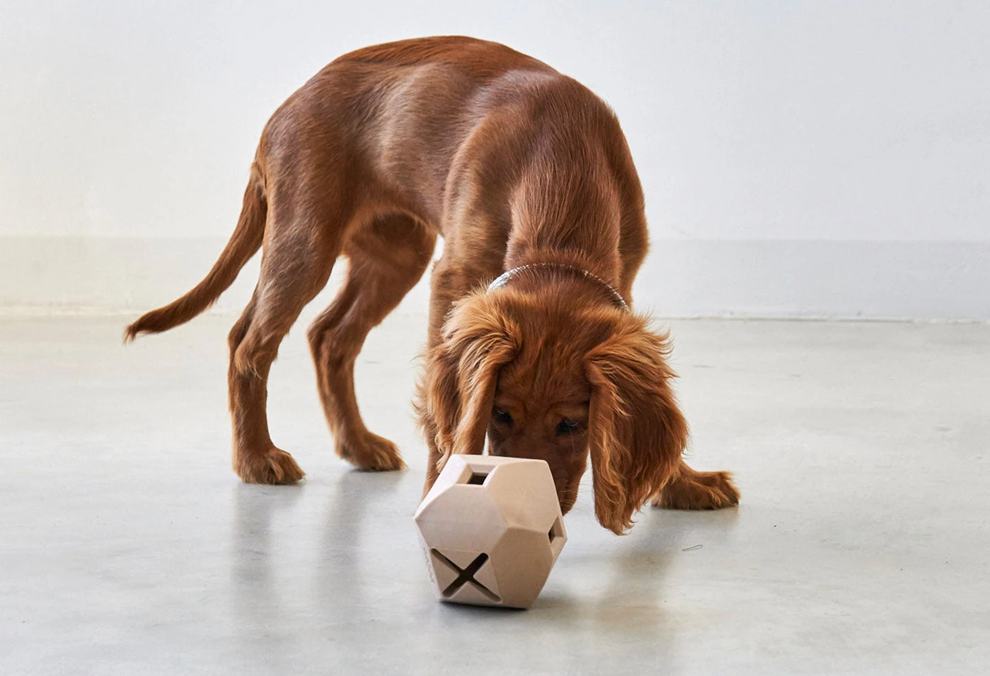 Sa forme spéciale offre différents défis aux poilus. Ses nombreux bords lui permettent de rouler dans tous les sens tout en ralentissant suffisamment pour donner envie aux toutous de pousser davantage la balle en quête de nouvelles friandises.