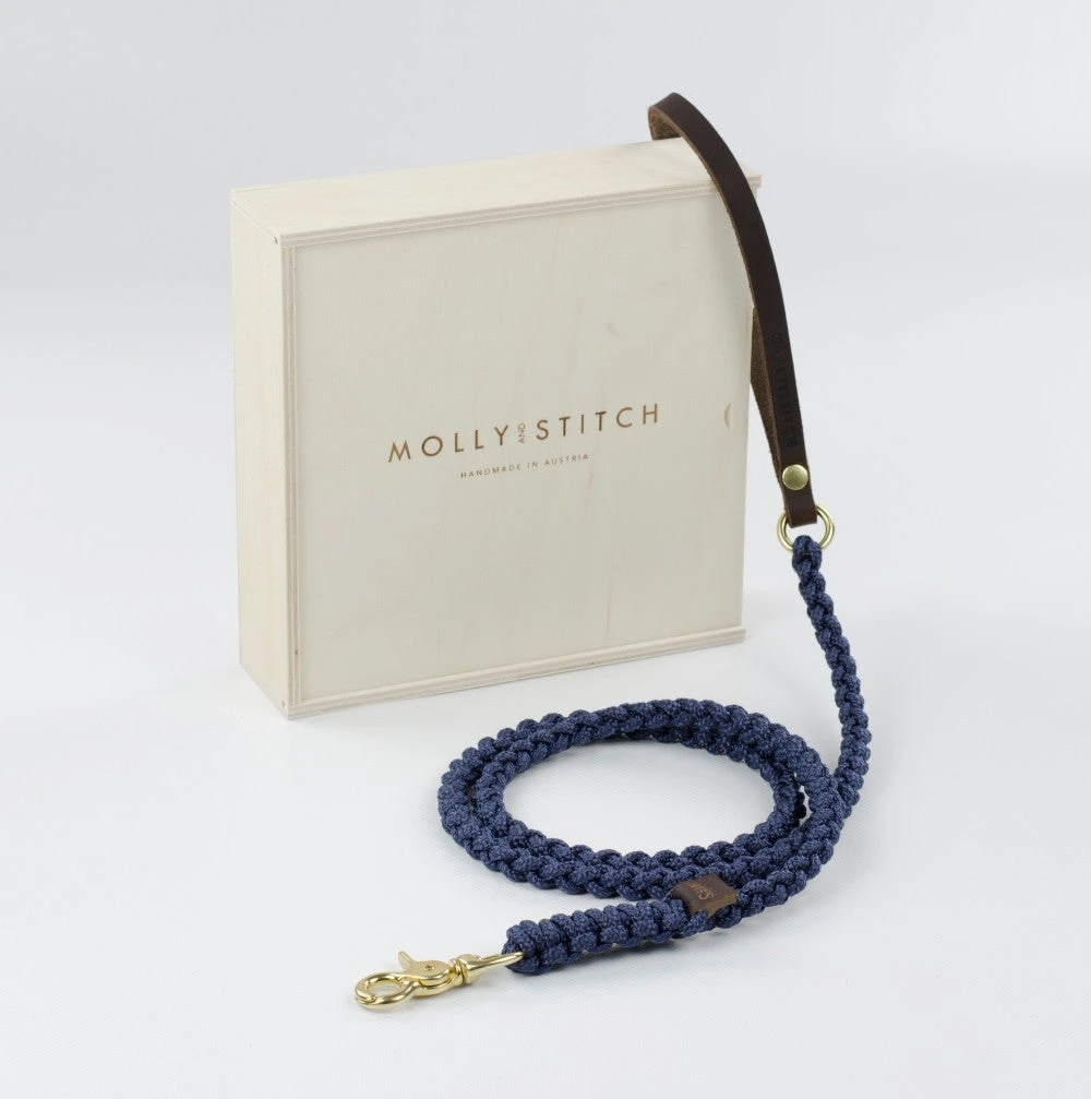 Nouveau modèle de laisse pour chien Molly & Stitch. Laisse en corde marine avec une poignée en cuir pour une touche plus sophistiquée.