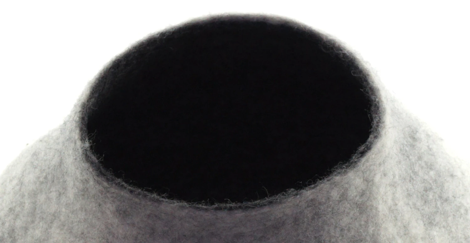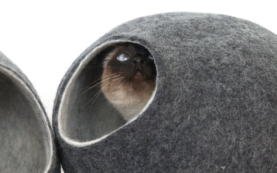 Maison pour chat confectionnée en laine feutrée. Chaque pièce est fabriquée à la main et est donc unique, comme votre chat.