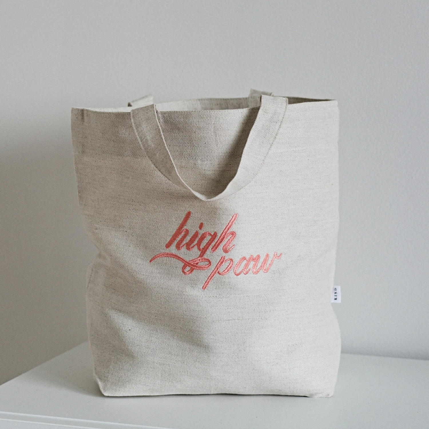 Le message High Paw est brodé sur le sac.